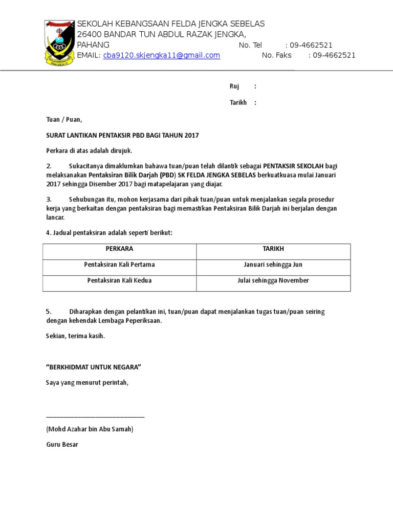Contoh Surat Lantikan Pentaksir Pbs Pdf