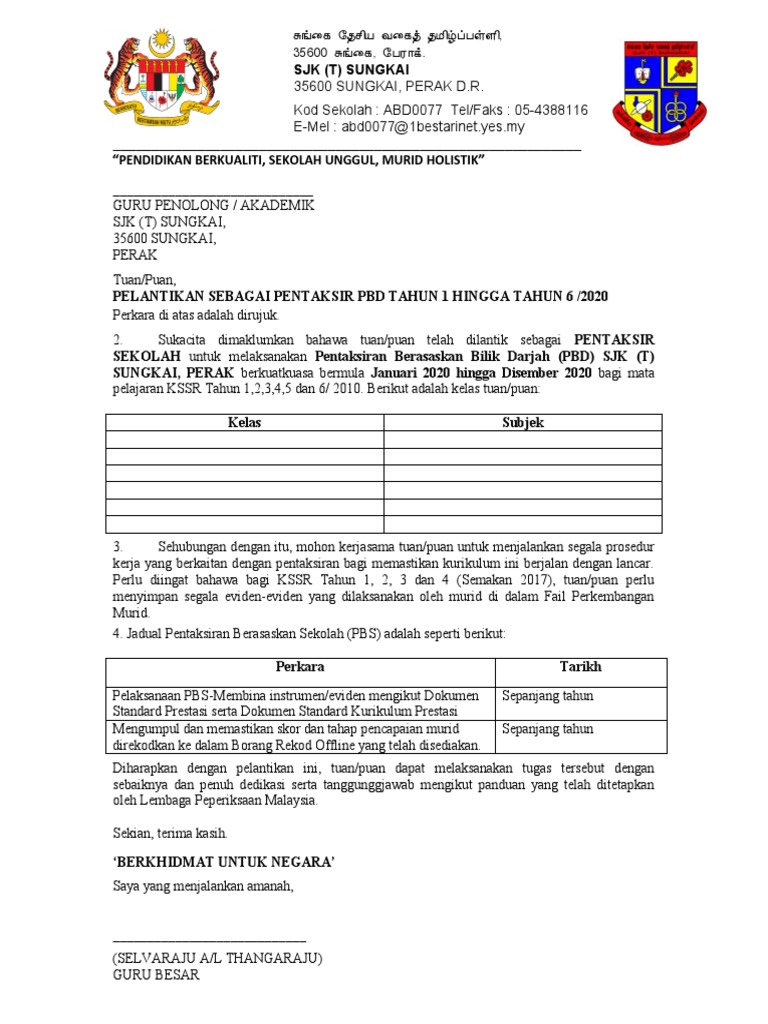 Jawatankuasa pertandingan permainan tradisional sekolah kebangsaan gerigis guru yang terlibat 10 mac. CONTOH SURAT LANTIKAN PENTAKSIR PBS SEKOLAH.